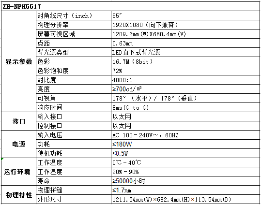 ZH-NPH5517 網(wǎng)絡(luò)液晶拼接
